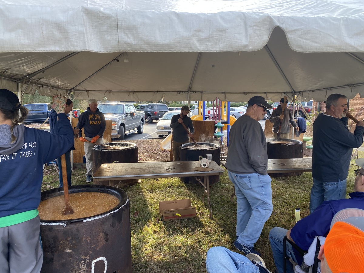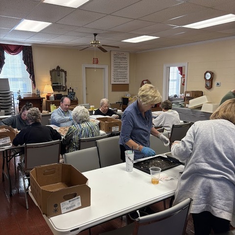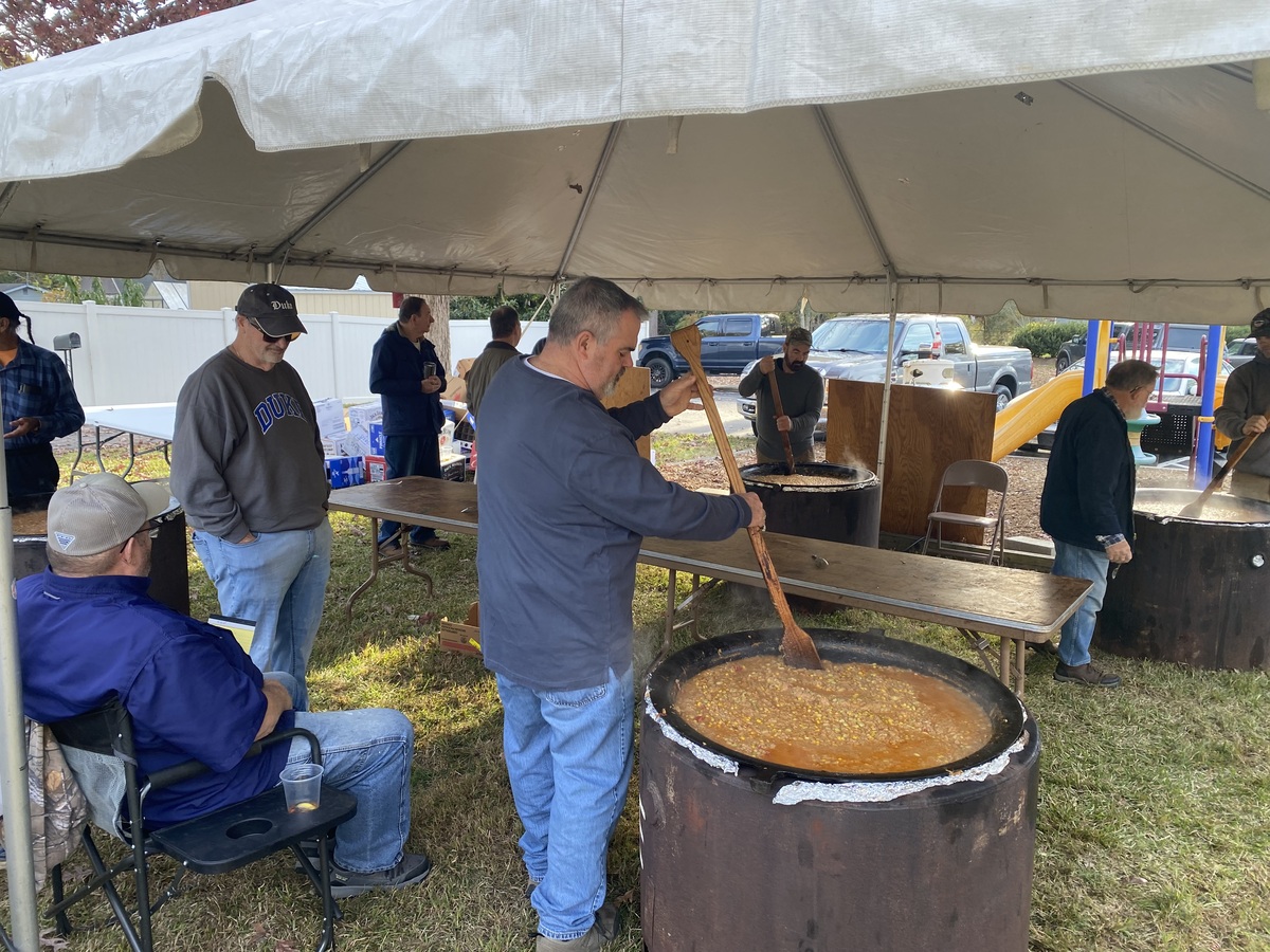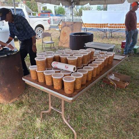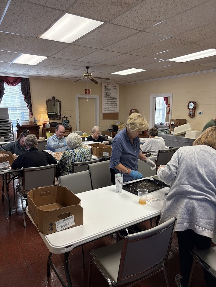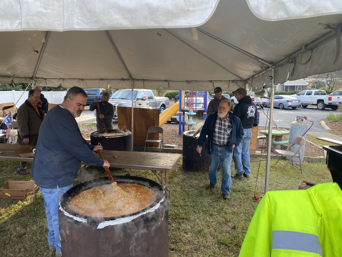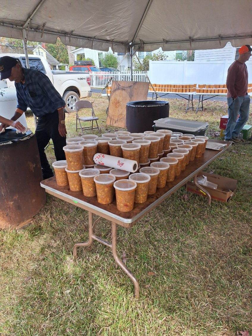 Gibson Memorial United Methodist Church recently visited A Touch of the Father’s Love, a food bank located in Nash County, where they donated quarts of Brunswick stew for serving families and veterans in our local community. Pictured below is April Baker, founder of the food ministry, with several of her volunteers. Also show are members of Gibson Memorial UMC preparing for their annual Brunswick Stew Sale in November 2025.