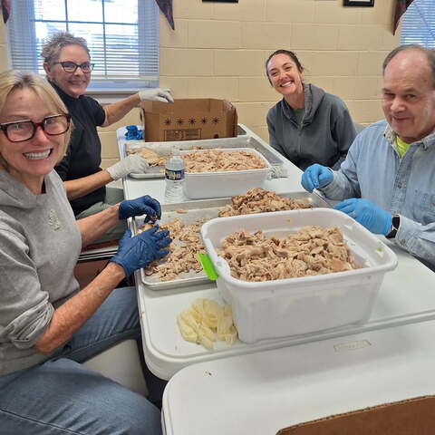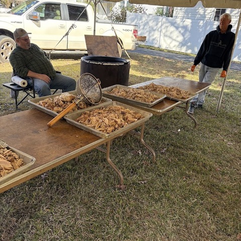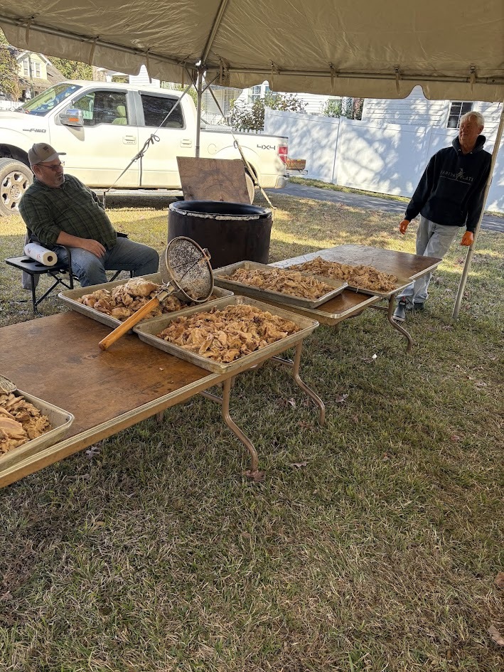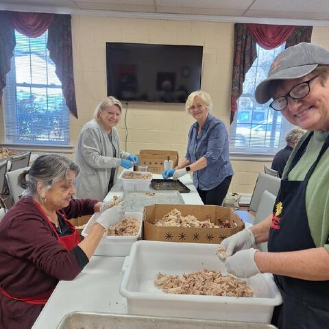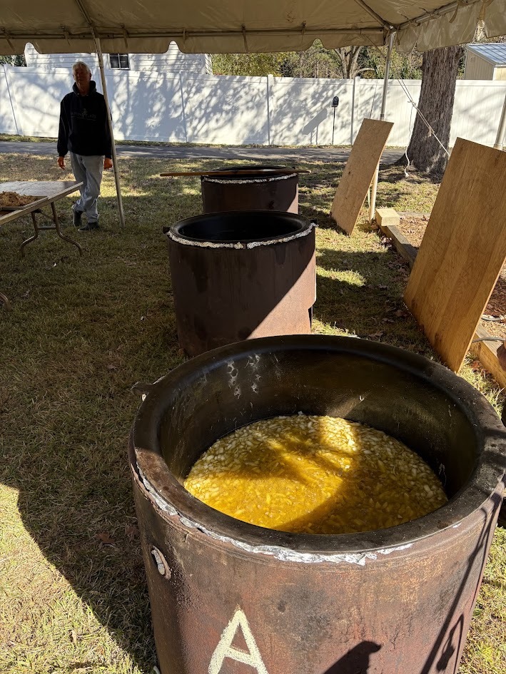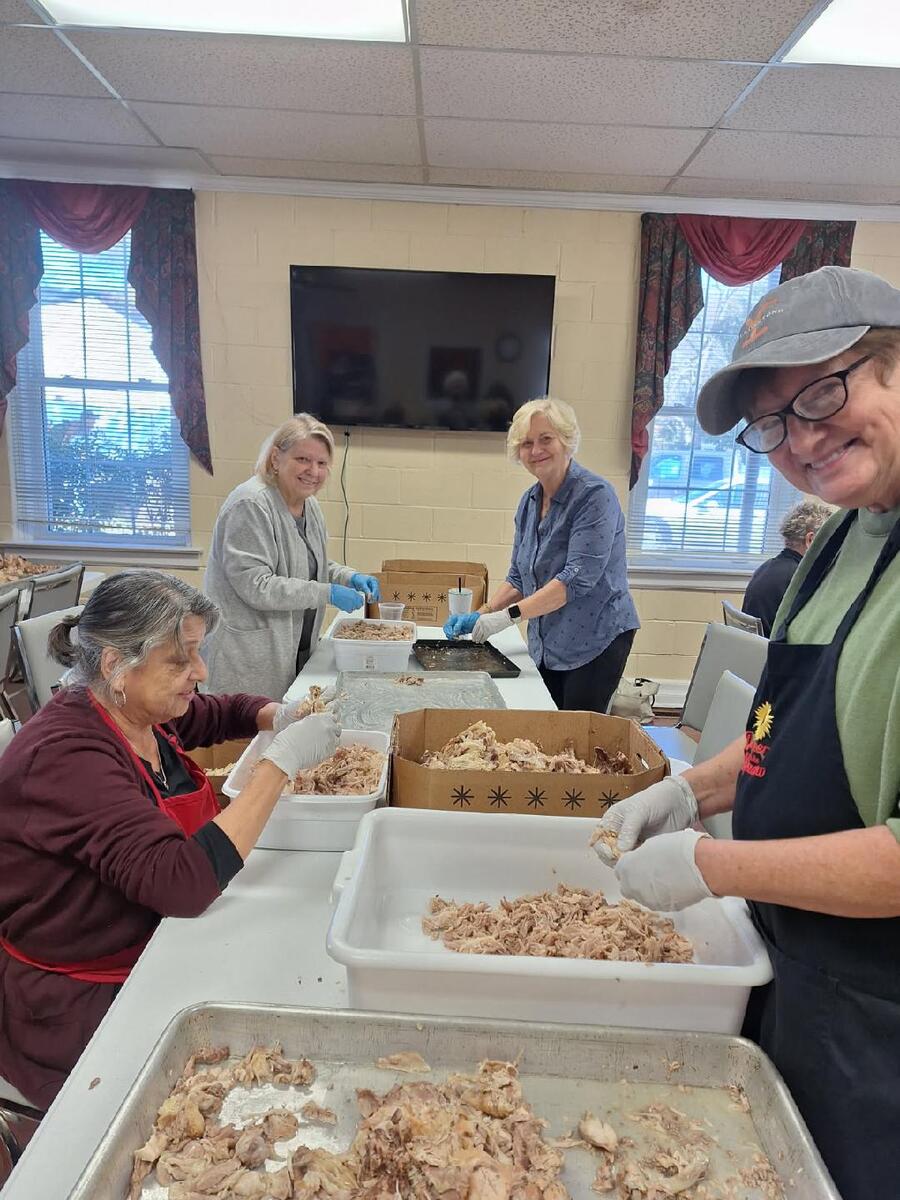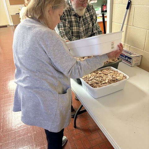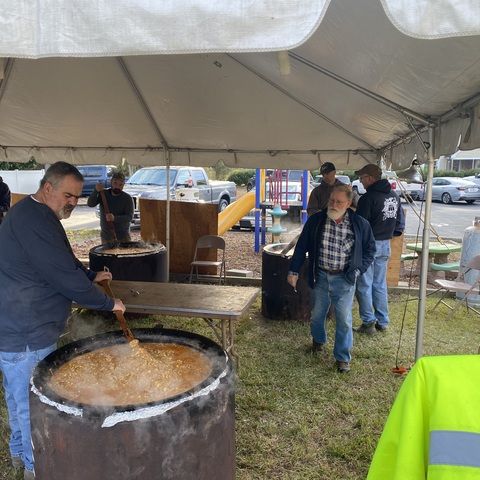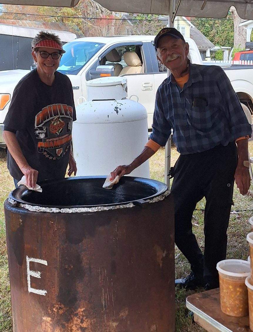 Gibson Memorial United Methodist Church recently visited A Touch of the Father’s Love, a food bank located in Nash County, where they donated quarts of Brunswick stew for serving families and veterans in our local community. Pictured below is April Baker, founder of the food ministry, with several of her volunteers. Also show are members of Gibson Memorial UMC preparing for their annual Brunswick Stew Sale in November 2025.